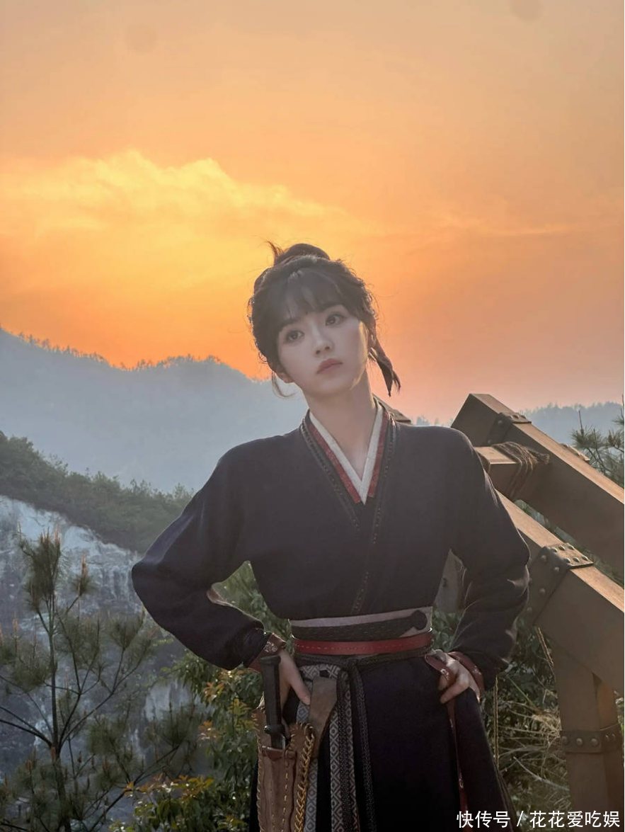 剧照中田曦薇的多组神态和动作,更是将角色的反差感演绎得淋漓尽致,每一个画面都极具故事感。她时而叉腰立于山巅,身姿挺拔,眼神坚定锐利,周身散发着生人勿近的飒爽气场,全然没有往日甜妹的软糯,江湖侠女的霸气与果敢扑面而来,气场全开;时而抱臂静坐,神情沉静淡然,眼神深邃,透着与年龄不符的沉稳,尽显侠女的内敛与笃定。